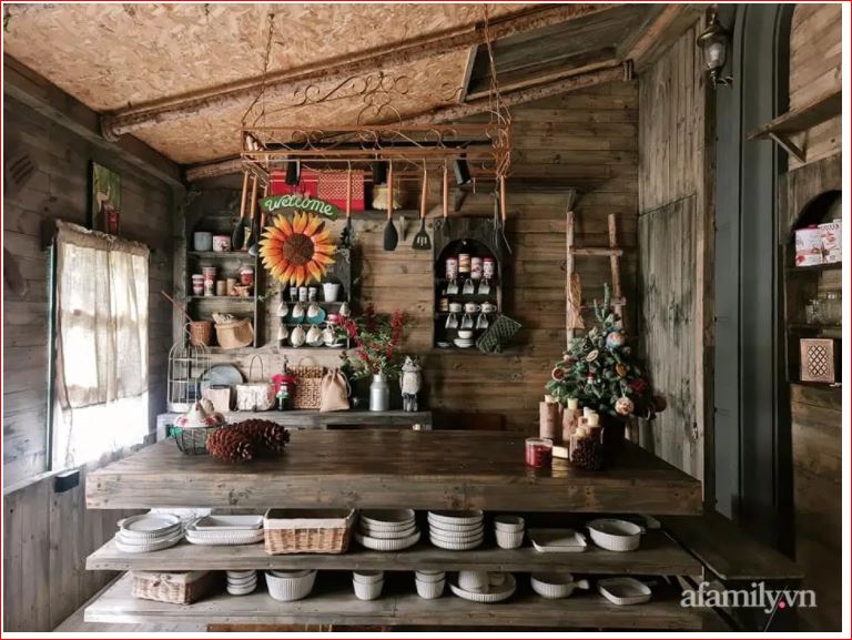Căn nhà được hoàn thiện trong 2 tháng với từng chi tiết được trang trí tỉ mỉ, ấn tượng. Góc bếp có thể ngắm nhìn khung cảnh bên ngoài khi cửa sổ rộng mở đón ánh sáng.