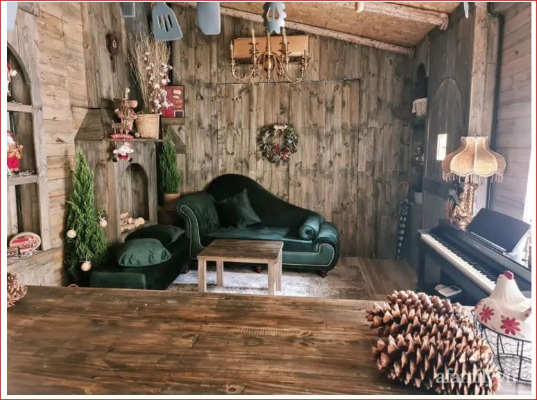 Về phần vật liệu, ngôi nhà được anh Minh Khang sử dụng gỗ thông palette là chính nên chi phí cũng không quá cao. Anh muốn làm đúng theo những gì mình đã tưởng tượng, đó là ngôi nhà gỗ trong rừng và quanh năm, mỗi ngày đều là Giáng sinh.