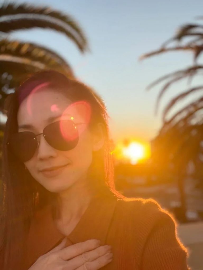 Mới đây, Kim Hiền đăng tải loạt ảnh ghi lại khoảnh khắc hoàng hôn, ánh nắng vàng rực rỡ phủ lên hàng cây, biển trời và không gian thiên nhiên yên bình. Trong một khung hình, nữ diễn viên xuất hiện giản dị, đeo kính râm, gương mặt nhẹ nhàng giữa ánh chiều tà. Những hình ảnh mang gam màu ấm, tĩnh lặng, gợi cảm giác an yên và chữa lành.