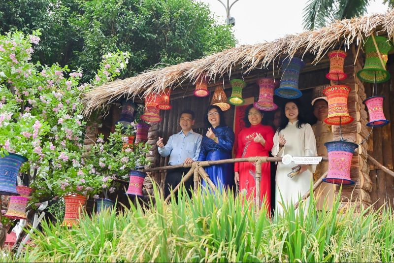 Điểm nhấn trung tâm của không gian năm nay chính là hình tượng Thánh Gióng cưỡi ngựa sắt bay về trời, tượng trưng cho sức mạnh quật cường và khát vọng vươn tầm của dân tộc trong kỷ nguyên mới. Trong không gian đậm chất di sản, du khách sẽ bắt gặp hình ảnh Nhà sàn Tây Bắc mộc mạc bên những thửa ruộng bậc thang, Làng hương rực rỡ sắc màu của miền Trung và Bến thuyền Hồ Sen thanh khiết đặc trưng của vùng đất Nam Bộ.